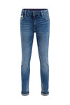 5-Pocket-Jeans aus Baumwollmix-Denim mit leichtem Stretchanteil, Slim-Fit-Passform und Reißverschluss mit Knopf. Normale Bundhöhe, verstellbarer Gummizug am Bund und schmal zulaufendes Hosenbein. Bis Größe 128 hat der Artikel einen Hakenverschluss.
