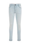 5-Pocket-Jeans aus Baumwollmix-Denim mit leichtem Stretchanteil, Slim-Fit-Passform und Reißverschluss mit Knopf. Normale Bundhöhe, verstellbarer Gummizug am Bund und schmal zulaufendes Hosenbein. Bis Größe 128 hat der Artikel einen Hakenverschluss.