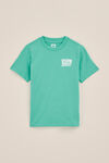 Normale Passform, Rundhalsausschnitt und kurze Ärmel. Hat einen kleinen Textprint „Born to surf“ auf der linken Brust und vergrößert auf dem Rücken.