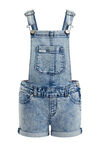 Blue Ridge 5-Pocket-Latzhose aus Baumwolle mit leichtem Stretchanteil, Skinny-Fit-Passform, einer Brusttasche und seitlichem Reiß- und Knopfverschluss. Die Hose hat kurze Hosenbeine mit Saumaufschlag und längenverstellbare Träger mit Metallschnallen. Bis Größe 128 hat der Artikel einen Hakenverschluss.