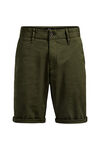 Chinoshorts aus elastischem Baumwoll-Mix mit Reißverschluss und Knopf, zwei Eingrifftaschen vorne und zwei Paspeltaschen hinten.