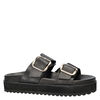 Nelson dames slipper. De slippers met twee banden zijn dit seizoen helemaal je van het! Loop niet achter de feiten aan en schaf nu jouw eigen paar aan. Uitgevoerd in leer met opvallende gespen die de slippers echte eyecatchers maken. De brede banden vormen zich comfortabel om de voet. Tevens gevoerd met leer. Voorzien van een voorgevormd voetbed van leer. Deze biedt betere ondersteuning en demping tijdens het lopen.