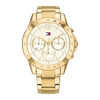 Die Tommy Hilfiger Uhr hat eine Quartz Uhrwerk. Das Zifferblatt ist gold und gekrönt mit Mineralglas. Der Schrank ist aus Edelstahl und hat einen Durchmesser von 38 mm. Die Band besteht aus Edelstahl und hat einen Faltschließe. Garantie: 1 Jahr bei Produktionsfehler.
