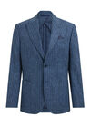 Schmal geschnittener Blazer aus einer gemusterten Leinenmischung mit zwei aufgesetzten Taschen und einer Brusttasche. Das Modell hat einen Knopfverschluss und einen klassischen Kragen.