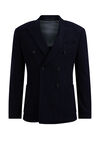 Schmal geschnittenes Sakko aus Strick mit zwei Knöpfen, zwei aufgesetzten Taschen, einer Brusttasche mit Stecktuch und zwei Innentaschen.