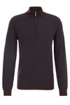 Normal geschnittener Pullover aus Merinowolle mit Jacquardmuster und Reißverschluss am Ausschnitt. Ausgestattet mit Stehkragen und langen Ärmeln.