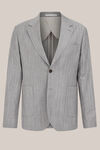 Elegant, luftig und modern. Dieser schmal geschnittene Blazer aus einer Leinenmischung hat einen Blazerkragen, einen Knopfverschluss und eine Einschubtasche auf der linken Brust sowie lange Ärmel mit Zierknöpfen. Auf der Vorderseite befinden sich zwei große quadratische Schlitztaschen und zwei Innentaschen. Das graue Mischgewebe mit gewebten Nadelstreifen verleiht dem Blazer einen raffinierten, modernen Look.
