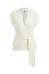 Ärmellose Weste aus Acryl-Mix mit Zopfmuster und abnehmbarem Bindegürtel. Normale Passform und klassischer Ausschnitt.