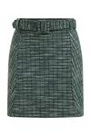 Normal geschnittener Rock in Bouclé-Optik mit verdecktem Reißverschluss und Gürtel. Der Rock endet über dem Knie.