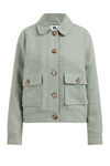 Gerade geschnittene Kurzjacke mit Hemdkragen, Knöpfen und Pattentaschen. Gefüttert.