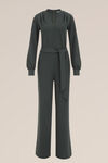 Keine Ahnung, was du anziehen sollst? Damit bist du im Nu gestylt! Dieser Jumpsuit in normaler Passform aus Jersey ist sehr bequem und hat einen verdeckten Reißverschluss und gerade Beine. Ein stilvoller Schleifengürtel und ein eleganter V-Ausschnitt vervollständigen das vielseitige Kleidungsstück.