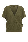 Dieses normal geschnittene Oberteil aus Baumwolle zeichnet sich durch ein Ajourmuster, einen Wickelausschnitt und kurze Ärmel aus.