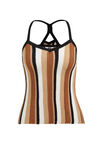 Normal geschnittenes Feinstrick-Top aus Viskose-Mix mit Muster und dezentem Glitzergarn. Das Modell hat einen V-Ausschnitt und gekreuzte Träger.