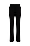 Elegante Hose aus fein gewebtem Material mit Bügelfalte auf Vorder- und Rückseite. Die Hose hat einen geraden Schnitt mit ausgestelltem Hosenbein, einen Reißverschluss mit Knopf, zwei Eingrifftaschen vorne und zwei Zier-Paspeltaschen hinten. Am hinteren Bund befindet sich ein Gummizug.
