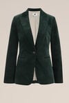 Fühle dich jedes Mal besonders, wenn du sie trägst. Dieser taillierte Blazer in Samtqualität hat Paspeltaschen und einen Knopfverschluss. Perfekt für jede Gelegenheit.