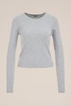 Die perfekte Basis für jedes Outfit. Dieses eng anliegende T-Shirt ist aus bequemem Rippstoff gefertigt, hat einen Rundhalsausschnitt und lange Ärmel.