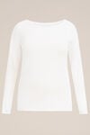 Umarme deine Stärke mit subtilen Reizen. Ein eng anliegendes Shirt mit Bootsausschnitt und eleganten langen Ärmeln. Lass dich in mühelosem Stil und zeitlosem Komfort erstrahlen.