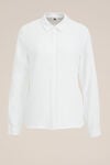 Lass dich von der zeitlosen Klasse umhüllen. Eine Bluse in normaler Passform mit klassischem Kragen, dezentem verdecktem Knopfverschluss und eleganten langen Ärmeln.