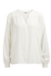 Eine normal geschnittene Bluse aus einer Viskosemischung mit Glitzerfäden. Das Modell hat einen V-Ausschnitt und lange Ärmel.