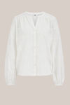 Luftig, raffiniert und reich an Details. Diese Bluse hat eine normale Passform, einen Mao-Kragen und einen Knopfverschluss. Die langen Ballonärmel werden mit einem einzigen Knopf geschlossen. Der Stoff ist mit floralen 3D-Stickereien verziert, die ihr ein anmutiges Aussehen verleihen.