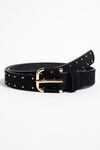 Kunstledergürtel in Samt-Optik mit Nieten und Metallschnalle.