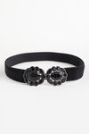 Ein elastischer Gürtel mit einer mit Strasssteinen verzierten Schnalle.
