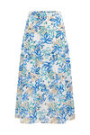Ein locker sitzender, gemusterter Baumwollrock mit Muster und Volant. Der Rock ist mit einem verdeckten Reißverschluss ausgestattet und endet über dem Knie.