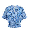 Ein normal geschnittenes Baumwolltop mit gemusterten und gesmokten Details. V-Ausschnitt, Knopfleiste und kurzen Ärmeln.