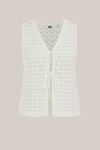 Eine starke Schicht ist die halbe (Mode-)Arbeit. Dieses Gilet in normaler Passform hat einen V-Ausschnitt, eine offene Strickstruktur, einen Singlet-Stil, zwei Schleifen vorne und einen gewellten Saum. So machst du jedes Alltagsoutfit ein bisschen schöner.
