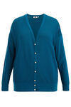 Normal geschnittene Strickjacke aus Baumwoll-Mix mit Rippstruktur und Knopfleiste. Ausgestattet mit V-Ausschnitt und langen Ärmeln.