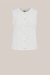 Die perfekte extra Lage. Diese Strickweste mit Rundhalsausschnitt und Knöpfen verleiht jedem Outfit einen weichen, femininen Touch. Trag es als Top oder über einer Bluse – der feine Stoff und die Passform machen es perfekt für endlose Kombinationen.