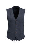 Schmal geschnittene Weste aus Feinstrick mit Knöpfen, einer Brusttasche und zwei Zier-Paspeltaschen. Der Rücken ist aus glänzendem Satin gearbeitet und mit einem verstellbaren Riegel mit Schnalle ausgestattet.
