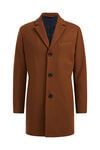 Gefütterter Kurzmantel aus recyceltem Polyester-Mix mit Kragen, Revers, dekorativen Knöpfen am Ärmelabschluss und Rückenschlitz. Der Mantel ist mit einer Brusttasche, Pattentaschen und zwei Innentaschen ausgestattet.