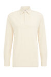 Ein schmal geschnittenes Poloshirt aus einer strukturierten Baumwollmischung mit Knopfverschluss. Das Modell hat einen Polokragen und lange Ärmel.