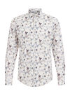 Schmal geschnittenes Hemd aus Baumwoll-Mix mit Muster und Knopfleiste. Ausgestattet mit weit ausgestelltem Kragen und langen Ärmeln.