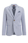 Gefüttertes Sakko aus meliertem Stretchmaterial mit schmaler Passform, Smoking-Revers und einer Brusttasche, deren Futter als Stecktuch nach außen getragen werden kann. Ausgestattet mit Knöpfen, zwei Taschen und langen Ärmeln.