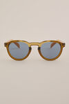 Ein subtiler Blickfang. Diese Sonnenbrille mit runden, dunkelblauen Gläsern und halbtransparentem, orangefarbenem Rahmen ist das perfekte Accessoire für einen lässigen, stilvollen Look.