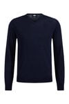 Feinstrickpullover aus 100 % Merinowolle mit schmaler Passform, V-Ausschnitt und langen Ärmeln mit Rippstrickbündchen.