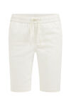 Normal geschnittene Chino-Shorts aus einer Baumwollmischung mit zwei Eingrifftaschen und zwei Paspeltaschen. Die Hose hat einen elastischen Bund mit Tunnelzug und