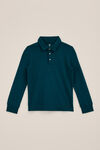 Das normal geschnittene Baumwoll-Poloshirt mit halber Knopfleiste hat einen Polokragen und lange Ärmel.