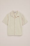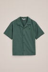 Frisch, lässig und bereit für warme Tage. Dieses Hemd hat eine kastenförmige Passform, einen Kragen und kurze Ärmel, einen durchgehenden Knopfverschluss und einen luftigen Stoff, der für optimalen Komfort sorgt.