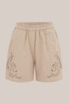 Damit kannst du nicht nur schnell auf die Terrasse gehen, sondern auch an den Strand. Dieses Short aus 100% Baumwolle hat eine lockere Passform, einen elastischen Bund, zwei Seitentaschen und weite Beinabschlüsse mit Lochstickerei. Tipp: Ist Teil eines Sets.