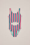 Bereit für einen Glaubenssprung. Dieser Badeanzug mit fröhlichem Print hat feste Träger, einen Rundhalsausschnitt und offene Details am Bauch und Rücken.
