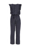 Dieser Jumpsuit in normaler Passform ist perfekt für kleine Abenteurer mit großen Plänen. Das Kleidungsstück ist aus luftiger Viskose gefertigt und zeigt ein verspieltes Muster und fröhliche Rüschen. Gerade Hosenbeine, ein Gummizug in der Taille mit Kordelzug und ein Druckknopfverschluss sorgen nicht nur für einen trendigen Look, sondern machen den Jumpsuit auch herrlich bequem.