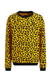 Normal geschnittenes Shirt aus elastischer Baumwolle mit Leopardenmuster und Stickerei. Das Shirt hat einen runden Ausschnitt und lange Ärmel mit Rippbündchen.