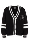 Normal geschnittene Strickjacke aus Baumwolle mit Stickerei und Knöpfen. Ausgestattet mit V-Ausschnitt, langen Ärmeln und farblich abgesetzten Bündchen.