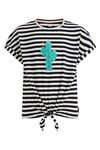 Locker geschnittenes T-Shirt aus Baumwoll-Mix mit Streifenmuster, Stickerei und Knoten-Detail. Das Shirt hat einen runden Ausschnitt und kurze Ärmel.