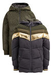 Beidseitig tragbare wattierte Jacke mit normaler Passform. Eine Seite im modischen Colourblock-Design, die andere mit schickem Leopardenmuster. Die Jacke ist mit einer Kapuze, zwei Eingrifftaschen und einem Reißverschluss mit Kinnschutz ausgestattet.