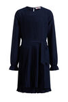 Normal geschnittenes Kleid mit Falten, abnehmbarem Bindegürtel und Knöpfen. Das Kleid hat einen runden Ausschnitt und lange Ärmel. Gefüttert.