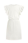 Normal geschnittenes Kleid aus Baumwolle mit Strukturmuster und elastischem Bund. Ausgestattet mit rundem Ausschnitt und kurzen Ärmeln.